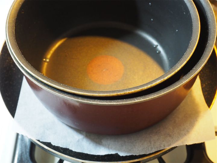 わたしはクッキングペーパーの上から鍋をふたつ重ねて乗せました。