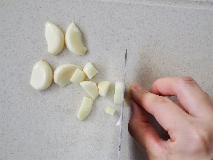 3. にんにくの皮と芽を取り除き、ざく切りにする。
