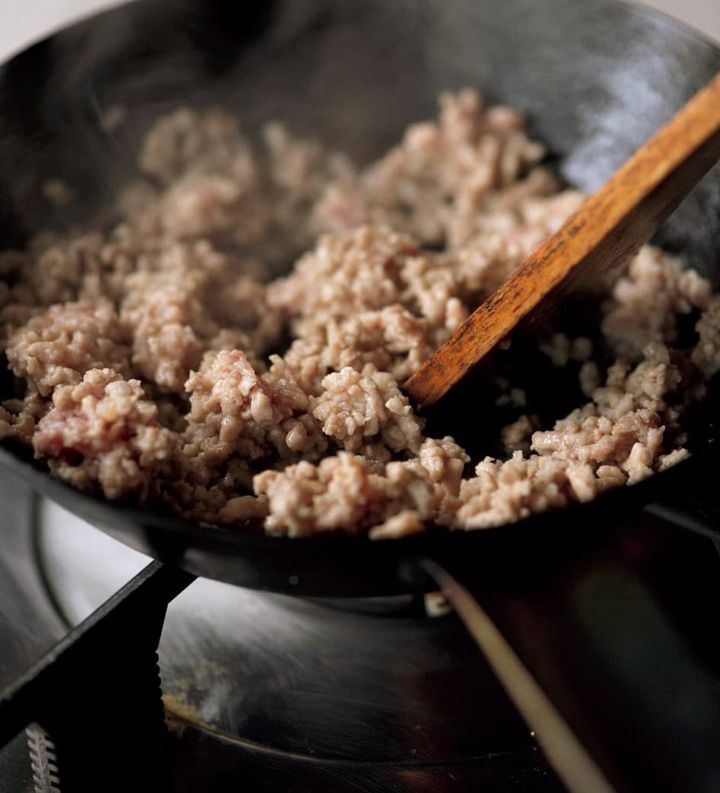 POINT_ひき肉は炒めて余分な脂をカットし、うまみやコクを引き出します。食感もよくなり、麺とからめたときのよいアクセントに!