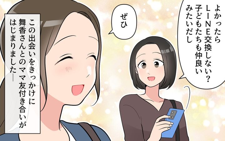 小学校で子どもが同じクラスの舞香と知り合った由加子。親子ぐるみで親睦を深めていくうちに、次第に由加子は舞香のお金への態度に違和感を覚え始めます。最初はただの節約家だと思っていたものの、舞香との価値観の違いはどんどん積み重なっていき、由加子は一緒に遊ぶことも億劫になってきてしまいます…。