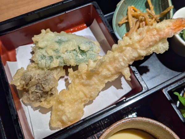 続いて、海老と舞茸、ピーマンの天ぷら。