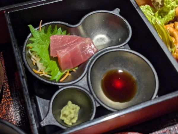 マグロの刺身は小ぶりだけど、少量をいただきたい女子にぴったり。