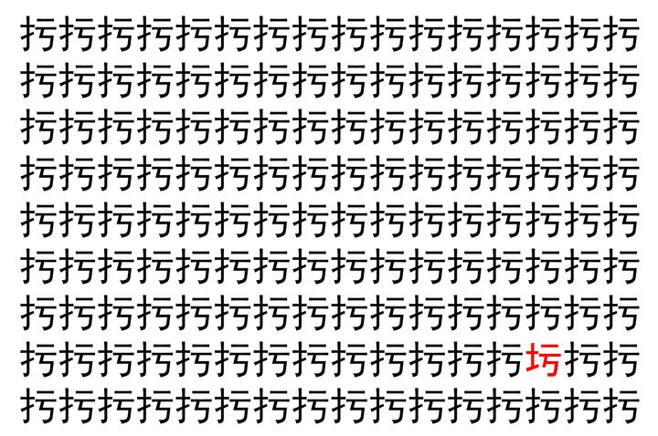 【脳トレ】「扝」の中に紛れて1つ違う文字がある!?あなたは何秒で探し出せるかな??【違う文字を探せ!】