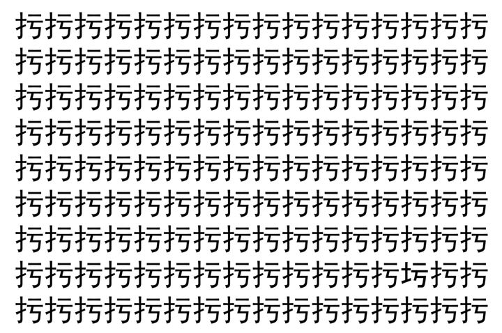 2. 【脳トレ】「扝」の中に紛れて1つ違う文字がある!?あなたは何秒で探し出せるかな??【違う文字を探せ!】