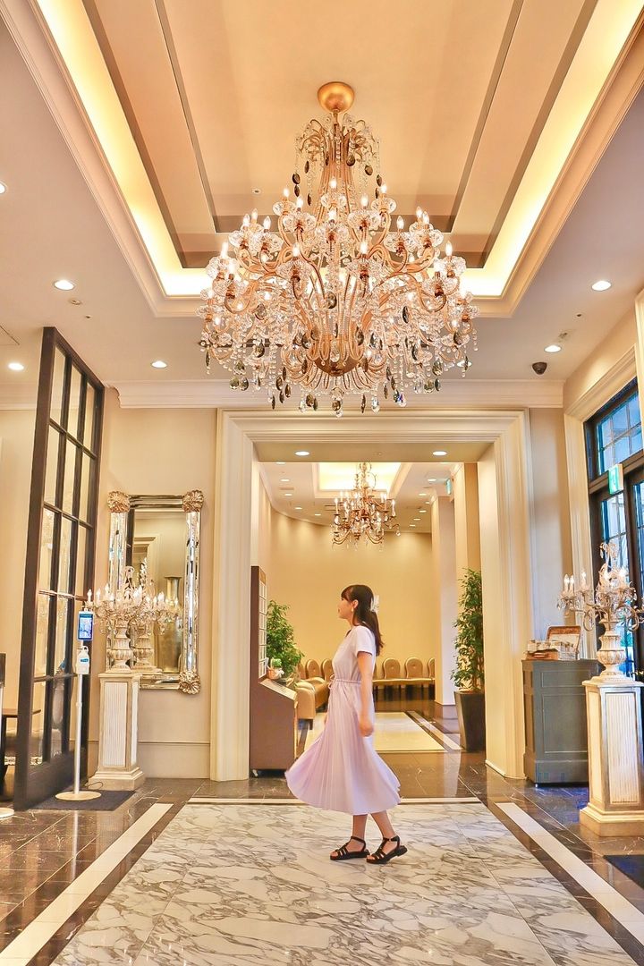 店内には大きなシャンデリアやゆったりとした赤いソファーがあり、高級感漂う雰囲気。