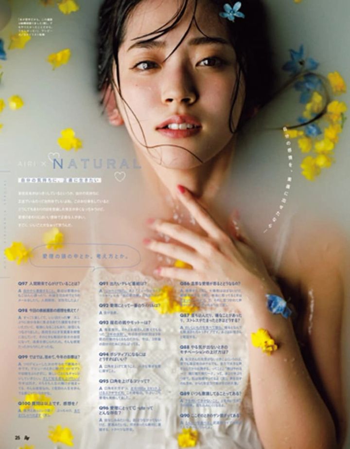 プレイバック企画でも登場した愛理にとって特別な号。中面では“花と愛理”をテーマにRayの甘い世界観を表現、100の質問にも答えました。