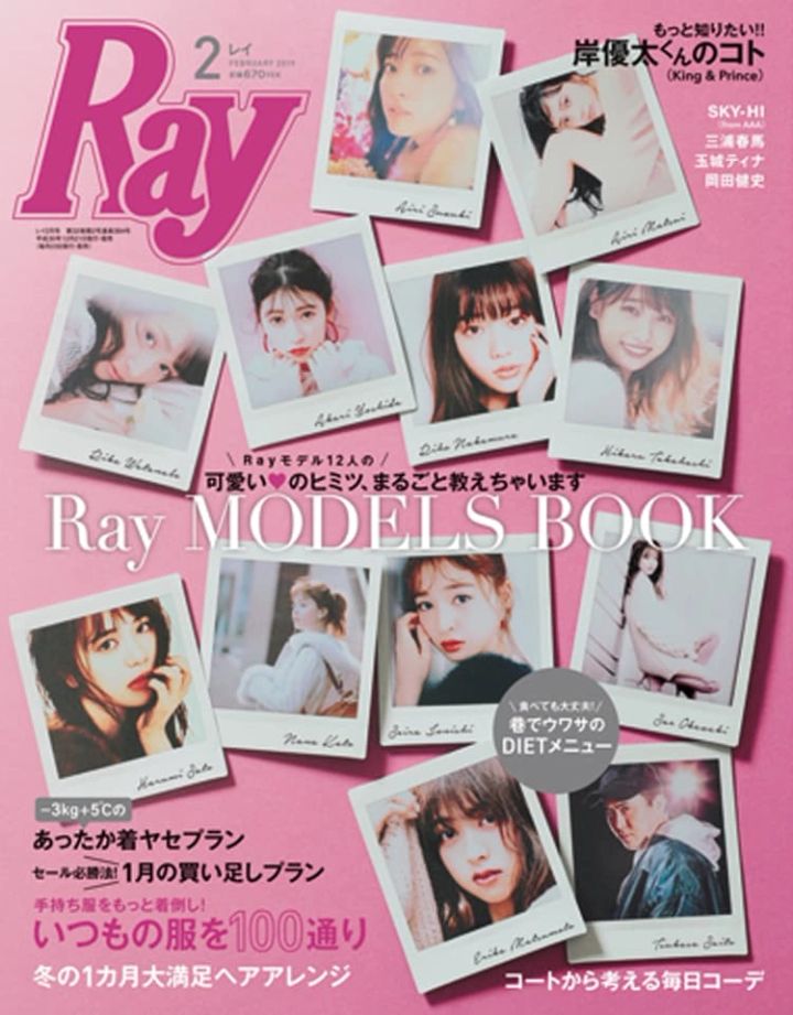 新年ということで、Rayモデル特集をした2月号。貴重な幼少期の写真や、私服にメイクと、愛理のことをたくさん知れる企画も♡