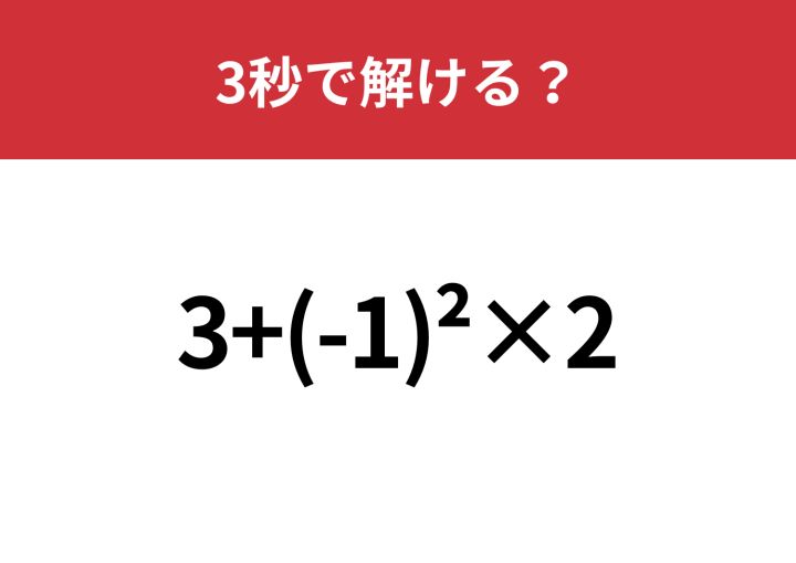やり方を思い出せればすぐに解けるはず!「3+(-1)^2×2」3秒で解ける?