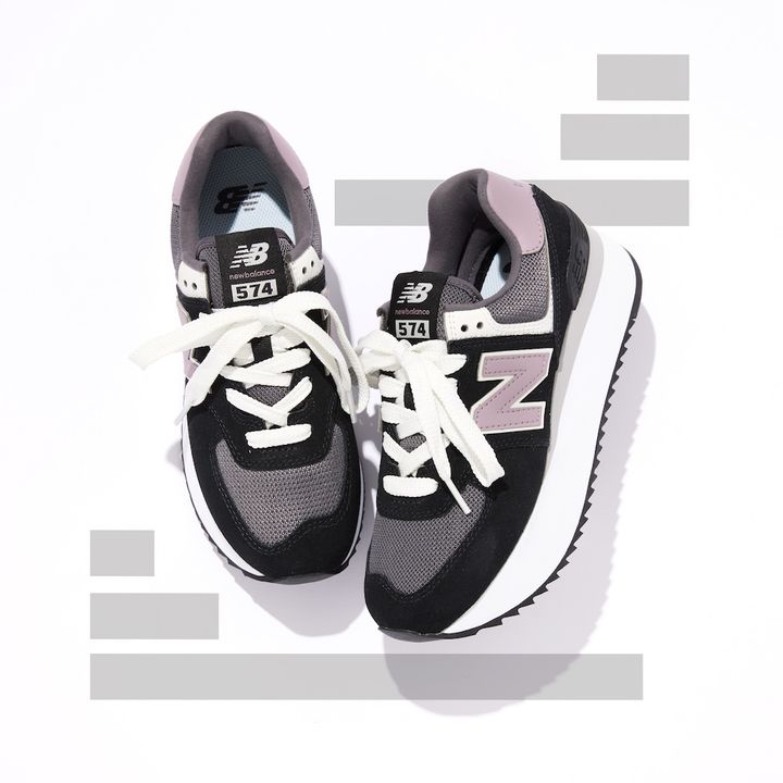 厚底のチャンキーソールにアレンジしたウィメンズモデル「574+(プラス)」に、新色が登場!スエード×メッシュのアッパーをニューバランスの定番「トーナルカラー」で展開しています。どんなコーデにもハマる万能さが魅力的。足幅はやや細めなので、サイズ選びには注意を!
