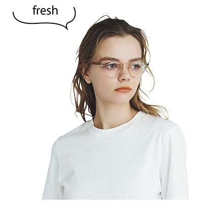 眼鏡/WAITING FOR THE SUN(リーンスプリング) ありそうでなかなか無い、ベージュがかったクリアフレーム。ワークシーンにも、カジュアルのポイントとしても、飽きずに長く愛せる1本。