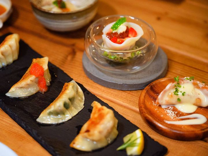ディナーで訪れたら20種類以上のメニューから自由に5品を選べる「餃子&モダンアジアンのプリフィックススタイル」コース(¥3,980~)を。