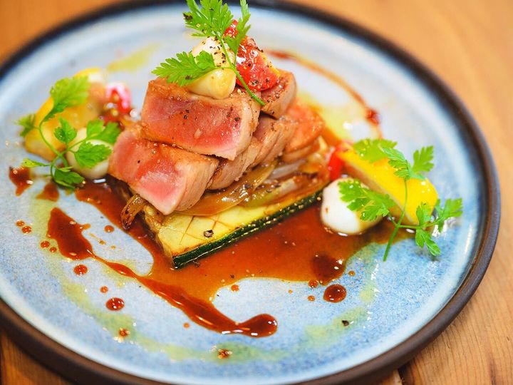 新鮮なマグロの旨みを引き出す、少し甘めでコクのある和風ソースがベストマッチ!