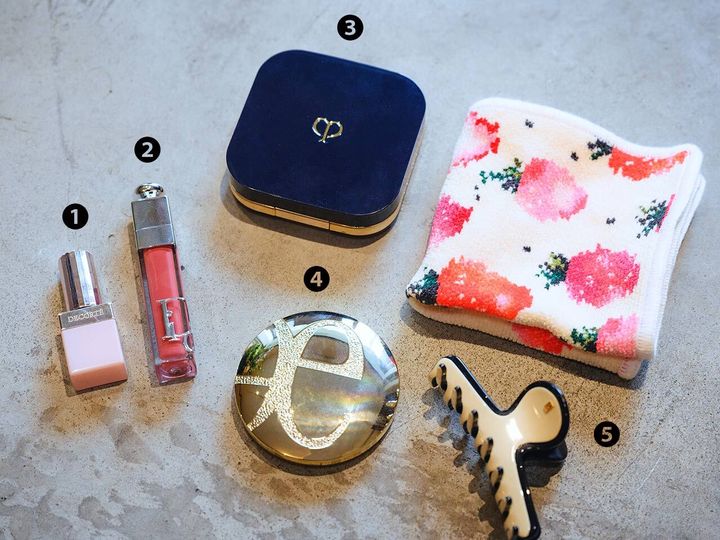 ヘアクリップは「アレクサンドル ドゥ パリ」(❺)。シンプルデザインで合わせやすく、ハーフアップする用に持ち歩いています。
