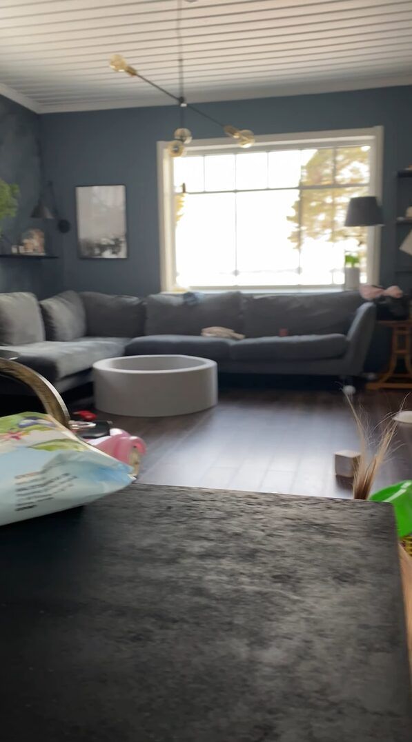 どうやらこの子は、テーブルの上に手を伸ばしてイタズラしようとしていたみたい。 テーブルの脇からチラッと顔をのぞかせる姿は、「まだなにもしてないよ~」と訴えかけているみたいです。