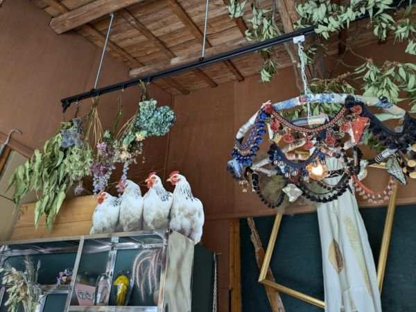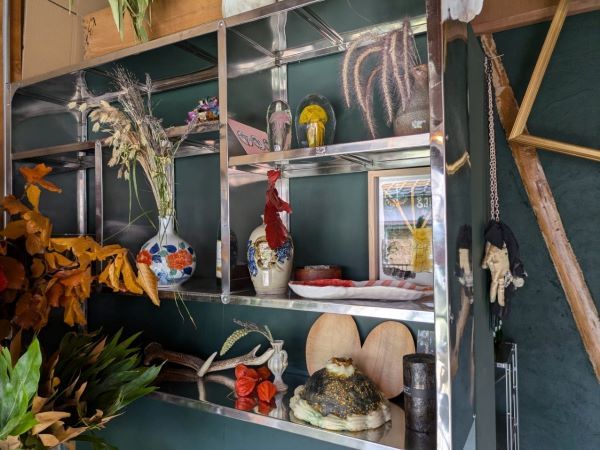 大きな窓ガラスを開けると、そこはまるで、どなたかのお家のよう!というのも、「好きなものだけをぎゅっと凝縮した空間を作りたい」という、インテリアが大好きで、今まで少しづつ集めたアンティーク家具や雑貨、大好きなアーティスト、クリエイターの作品が飾られているからなんです。