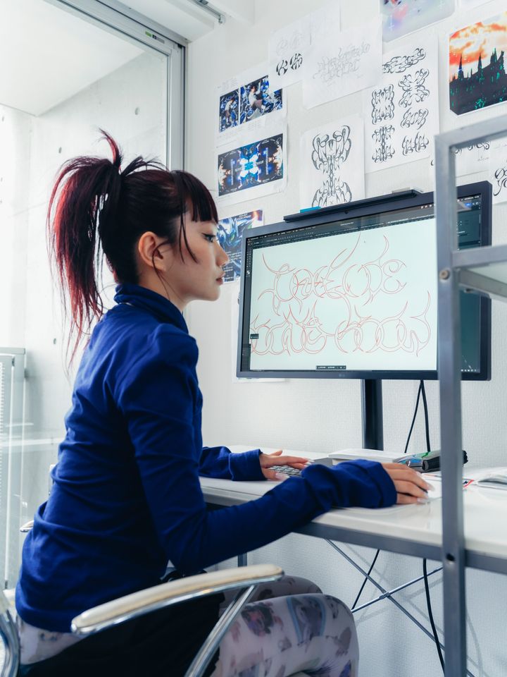 デジタルネイティブに生まれた世代の強みは、国内外のあらゆるものを簡単に見ることができ、それを知った上で自分のルーツがどこにあるのかを自然に考えられる部分だと言う。世界と戦うには、自分の何を推せばよいのか。問い続けて出た答えは、日本人としての強みを最大限に生かすこと。「日本のグラフィックの強さは圧倒的な細かさだと思っています。日本で生まれ、日本人らしい性格もアートに反映していく。大きく見せたり虚構の自分をつくり出したらアーティストとして意味がないので、常に自分に正直であること。生きることについても来月はどんな生き方をしたら綺麗かなと幼い頃から考えています」