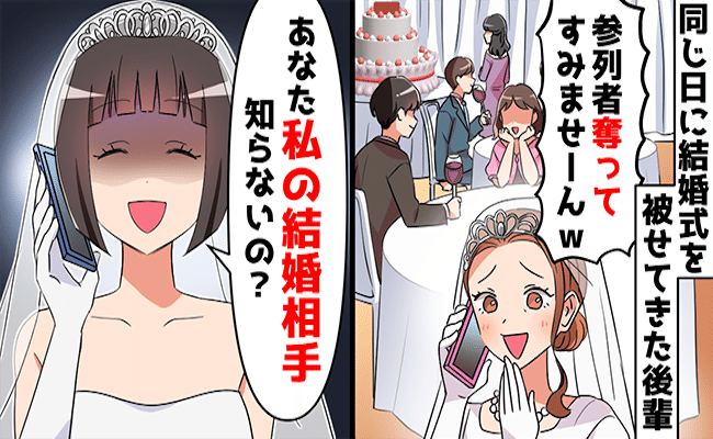 「奪ってごめんなさ〜い」結婚式を被せてきた後輩。自信満々だった態度が急変したワケは!?