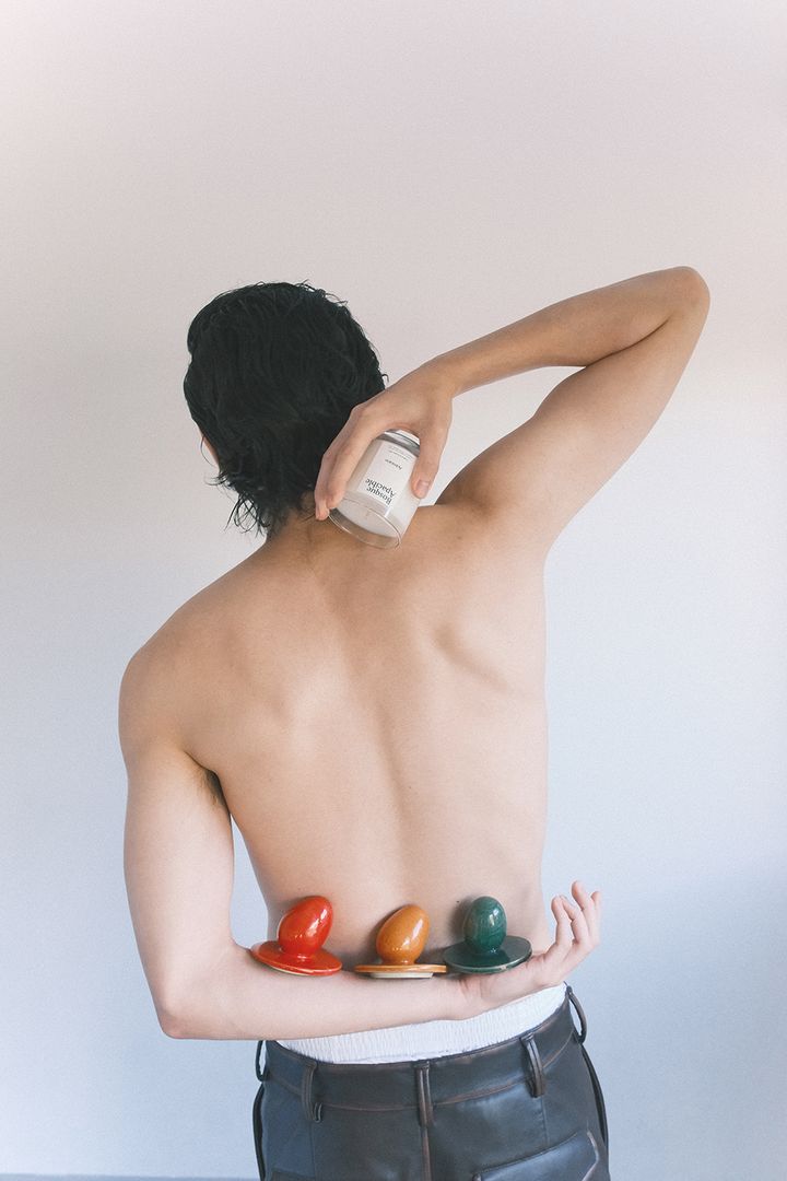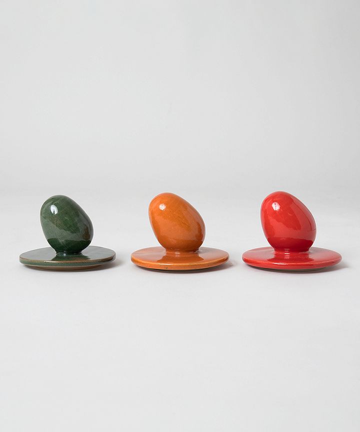 そしてキャンドル一緒に発売される、ブランドのアイデンティティともいえる“Esfera”(エスフェラ)は、陶磁器のオブジェ。一見すると装飾的なキャンドルのフタのように見えますが、使い方はその人の自由。ブランドのファウンダーが、職人とディスカッションを重ね、多様な薬液や加工技術によって、ひとつひとつ丁寧に手作業で作られています。卵のような、なんとも言えない球体は、質感や表情がそれぞれ違ってとても個性的。使う人が自由に解釈をして、日常生活に新たな物語を加えてほしい、そんなブランドのフィロソフフィーを体現しているようなアイテムです。