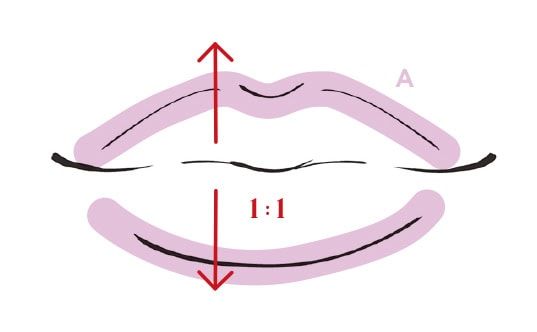 「唇のフレームをくっきり強調すると古臭く見えるので要注意。必ず滲ませること」。まず初めに、クリーミーな質感でスルスル描けるヌーディなローズブラウンのリップペンシルAを使用。実際の輪郭より少しだけ外側をなぞるように縁取っていく。唇の上下の縦幅が1:1になるように引いて、唇の存在感とボリュームをあくまで自然に際立たせて。その後、No.1のローズレッドのリップをシンプルに唇全体に直塗りしたらフィニッシュ。
