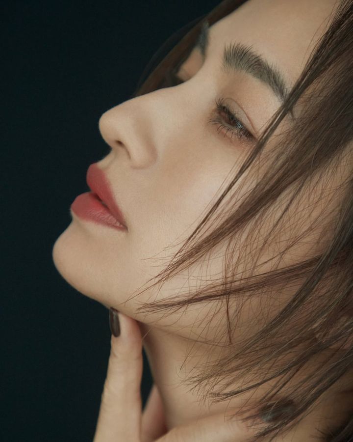 「今、私の中で赤リップがリバイバル。リップライナーとルージュを組み合わせてじゅわんと発色させた唇がヒロインの顔つきで、フレンチシックなムードを楽しみたい気分。カールさせたバサバサのまつ毛で瞳を軽やかに“盛った”のも、審美眼を培った大人だからこそできる選択。リップの印象を引き立てるべく、まぶたと頰はシアーなブラウンの濡れツヤ質感を添える程度に留めて。ハイセンスなコントゥアリングを意識して、誰もがハッとする表情にアップデート」