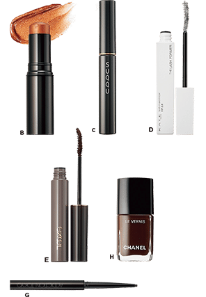Bボーム エサンシエル ソーラー グロウ ¥7,040(シャネル・数量限定品) Cセッティング アイブロウ ジェル 01 ¥3,520(SUQQU・9月6日発売) Dケイト ラッシュマキシマイザーHP2.0 EX-1 ¥1,320※編集部調べ(カネボウ化粧品) Eエクセル ラッシュオプティミズム LA02 ¥1,680(サナ・8月20日発売) Fブルーミングラッシュ ニュアンスカーラー 18 ¥3,300(ジルスチュアート ビューティ・8月2日限定発売) Gザ ジェル アイライナー Ivy Tree ¥3,300(アディクション ビューティ・8月2日発売) Hヴェルニ 185 ¥4,620(シャネル・数量限定品)