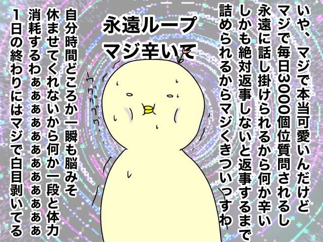 娘3歳10か月。本当可愛いんだけどしゃべりすぎ。一瞬も脳みそが休まらずエブリデイ白目剥いてます|アツアゲの育児絵日記