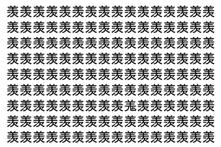 2. 【脳トレ】「羡」の中に紛れて1つ違う文字がある!?あなたは何秒で探し出せるかな??【違う文字を探せ!】