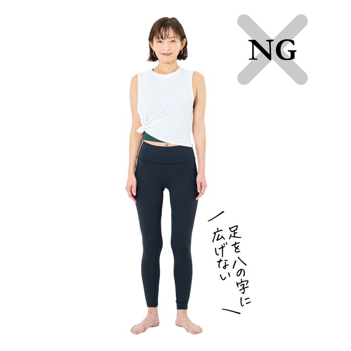 ふくらはぎにしっかり効かせるために、つま先をハの字に広げないようにしましょう。