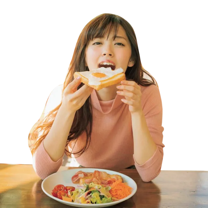 食べる姿が誰よりも幸せそうな愛理のもぐもぐショット。流行りのグルメから、ラーメンやスイカまで、撮影中もガッツリ食してた♡