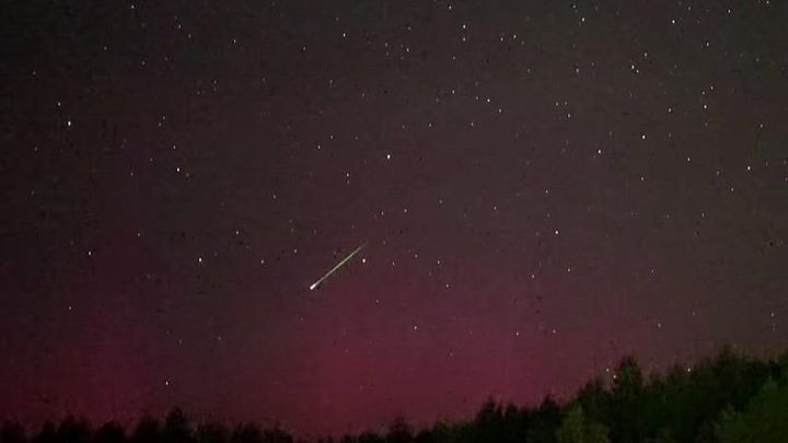 夜空を赤く染めるオーロラと、流星群の「共演」が8月12日の夜、北海道内で観測されました。