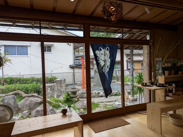 皆さんの学校にも、学校の校庭に設置されていた観測器具が搭載された設備「百葉箱」ってありましたよね?その百葉箱のように、様々なものを感じ取っていけるようにという想いと同時に、「百様」百の様態で、「百用」百の用途で、「百葉」葉や実りの多い木のようにあり続けたい、という想いをこの漢字二文字に込めたそうです。 なんと7、8年もの間、物件を探していたそうですが、「ここだ!」と即決したのが、こちらの古民家だったんです。「百葉」は建物の一番手前の、縁側があるお部屋ですよ。