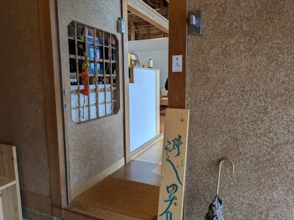 エアコンと電気以外、1か月かかって全て、オーナーさんがDIYで仕上げたという店内を、早速ご紹介させていただきますね。趣のある落ち着いた雰囲気の入り口をよく見てみると、ミニュチュアの看板が壁についていたりと、期待度が上る演出に、胸が高まります。