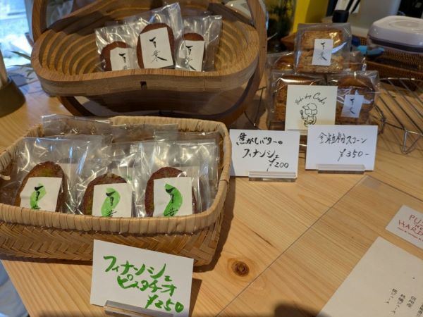 焼き菓子も販売していますよ。驚いたことに、以前取材させていただいたスコーン専門店の商品もありました。色々食べ歩いたオーナーさんが、百葉のコーヒーに合う!と思った、こちらのスコーン屋さんから生地を分けてもらい、百葉の店内で焼き上げています。