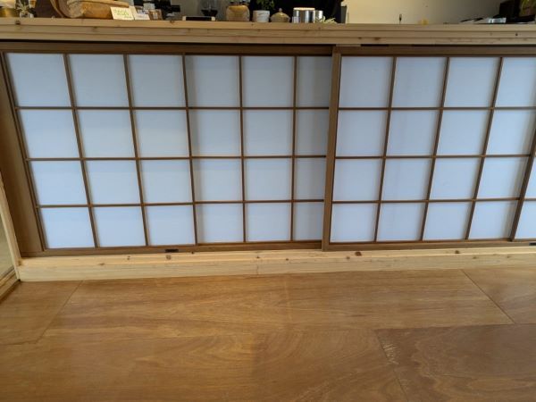 反対側は、懐かしい雪見障子で、実家に帰ってきたかのような懐かしさを覚えました。全てをお見せすると楽しみが減ってしまうので、是非ご自身の目でお確かめくださいませ♪ ヒノキの香りがするテーブルと椅子も、几帳面さが感じられる完璧な仕上がりです。