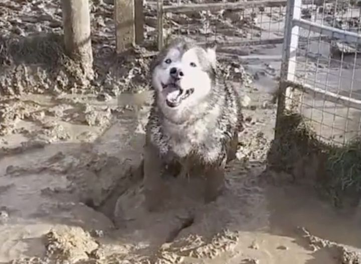 3. 泥んこになって大はしゃぎ♪子供のように遊ぶ犬さん。