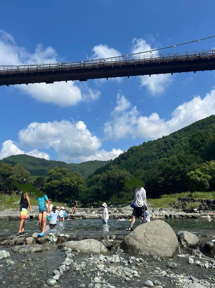 川の周りは木などもあり日陰にもなりますがテントなどの日よけがあると便利だと思います。