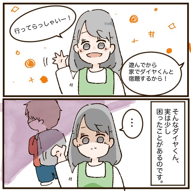 「遊んでから、家でダイヤくんと宿題するから!そう言って家を出るアサヒくんを「行ってらっしゃーい!」と見送るママ、ママには、ダイヤくんに対して実は少し困ったことがありました。