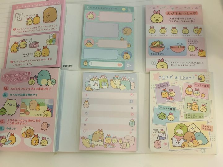 すみっコぐらしはかわいい文具が多いですよね。「えびてんのしっぽ」シリーズの文具も色々とありました。その中でもパタパタメモがとってもかわいかったので紹介します。
