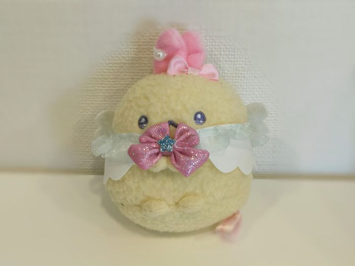 1つ目は手のひらサイズの「天使なアイドルぬいぐるみ」です。アイドルコスチュームがかわいいです。こんなにも目がキラキラしたすみっコぐらしのキャラクターは他にはいないですね。