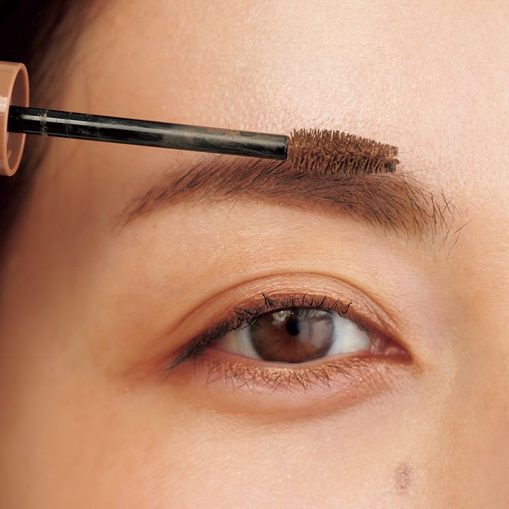 旬眉にマスカラはマスト。眉毛の裏表に塗り、毛流れを整えればハリやコシもUP。眉頭は上向きに。毛が足りない部分はペンシルで描き足して。