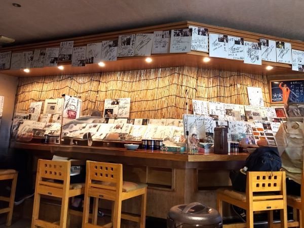 着丼まで店内にずらりと飾られたサインなどを見て楽しむ。