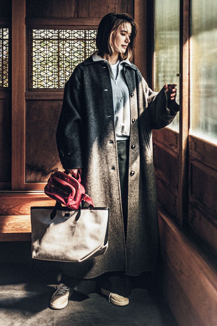 少数精鋭を厳選したミニマムな旅支度で移動中でも旅先でも心地よくいたい温泉旅。全身をカバーリングするキレイめコートを味方にすれば、スウェットやスニーカーも大人っぽくクラスアップ。コート¥154,000(サクラ/インターリブ)スウェットトップス¥28,600(フィルメランジェ フォー RHC/RHC ロンハーマン)Tシャツ¥1,353(ユナイテッドアスレ/キャブ)パンツ¥37,400(ロエフ/エイチ ビューティ&ユース)スニーカー¥35,200(デイト フォー ユナイテッドアローズ/ユナイテッドアローズ 渋谷スクランブル スクエア店)バッグ¥61,600(アニヤ・ハインドマーチ フォー ユナイテッドアローズ/ユナイテッドアローズ 渋谷スクランブルスクエア店)トートバッグ¥20,900(アンドミューク/ユナイテッドアローズ 有楽町店)