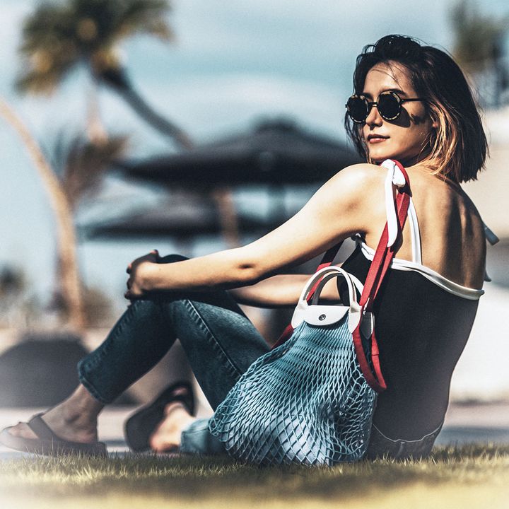 水際のオシャレを満喫できる海外リゾート。日本の寒さを忘れて、海やプールをとことん楽しめるアイテムをトランクにイン。ブルーデニムはビーチでも街でも着回せるリゾート旅のマストハブ。水着¥35,200(ミコモリ)デニム¥27,500(アッパーハイツ/ゲストリスト)バッグ¥22,000(ロンシャン/ロンシャン・ジャパン)サンダル¥8,250(マリブサンダル/シードコーポレーション)サングラス¥79,200(マイキータ/マイキータ ジャパン)