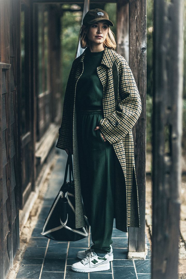 トレンドでもあるスウェットセットアップ。今っぽさを意識したシルエットや色で選んで。コート¥126,500(エイチ ビューティ&ユース)スウェットトップス¥13,200スウェットパンツ¥14,300(ともにステュディオ アール スリーサーティー)トートバッグ¥158,400(NANUSHKA/エスケーパーズオンライン)スニーカー¥18,700(ニューバランス/ニューバランスお客様相談室)キャップ¥4,400(ニューエラ)ソックス¥2,750(ブルーフォレ/RHC ロンハーマン)