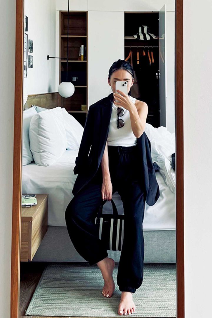 JACKET_UNIQLO +J、TOPS_ ZARA、PANTS_ ZARA、BAG_ BALENCIAGA