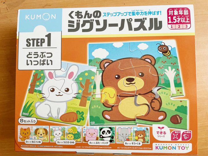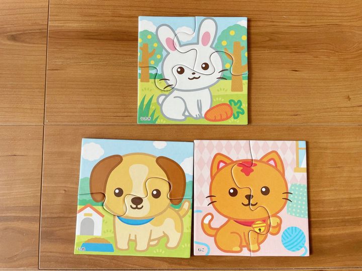 3歳までにジグソーパズル100ピースできる子は東大にいける?という噂もある程知育として便利なジグソーパズル。最初は2ピースから初めてだんだん増やしていこうかなと思っているのですが、まだ遊んでくれそうもなく…触らせてみたり、目の前で重ねて見たりを続けています。