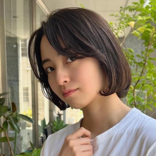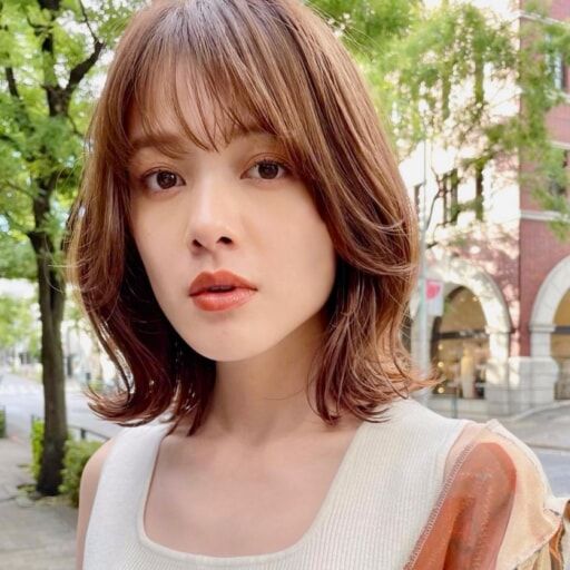 あごラインより少し長めレングスのゆるふわボブはボブの伸ばしかけというイメージ。柔らかな質感と丸みのあるシルエットが魅力を引き出します。