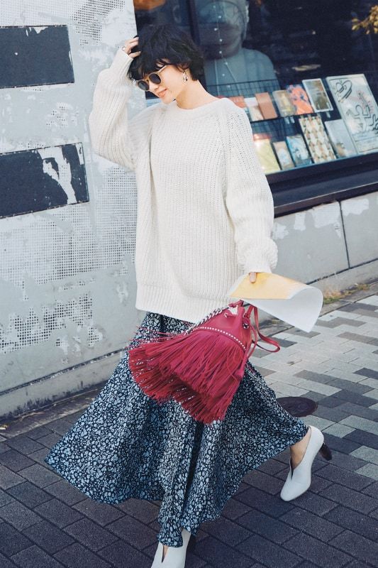 ひらひらと軽やかに舞う花柄スカート×ゆるトップスの黄金バランス