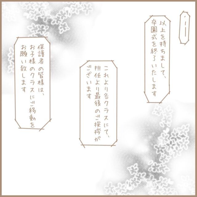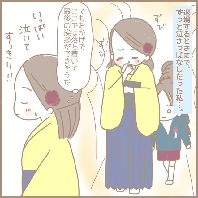 でも、式でたくさん泣いたおかげで、クラスに戻ってからはすっきりした気持ちで始められたような気もします。