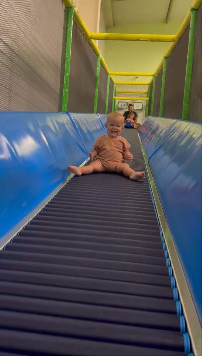 ところが、その間に弟くんがローラーすべり台を滑りはじめました!